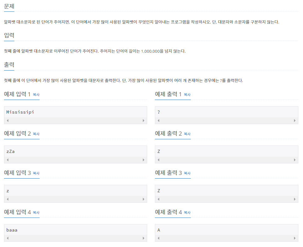 링크 www.acmicpc.net/problem/1157
