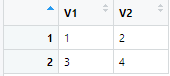 x=matrix( c(1, 2, 3, 4), nrow=2, byrow=F)) 세로로