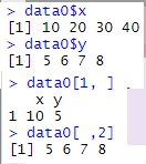 +) x=c(1,2,3,4,5,6,7,8,9,10), x1=seq(1, 10), x2=1:10는 저장된 것이 같다.