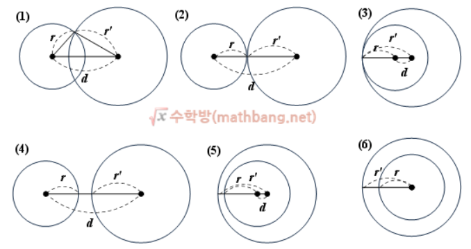 (2) d=r1+r2 이거나 (3) d=r1-r2