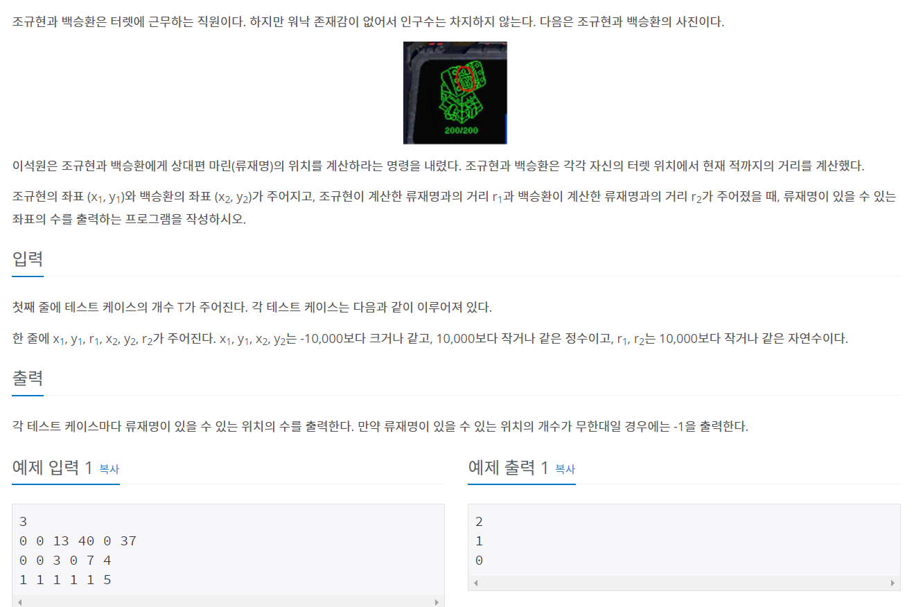 링크 www.acmicpc.net/problem/1002