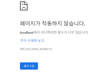 페이지에 권한을 설정했더니 'localhost에서 리디렉션 한 횟수가 너무 많습니다.'